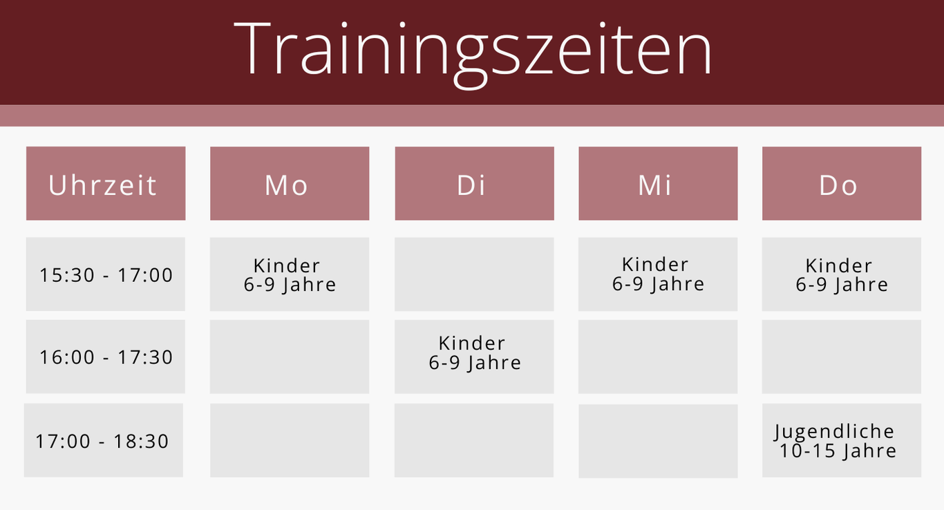 Die Altersgrenzen dienen der Orientierung und sind von der individuellen Entwicklung des Kindes abhängig. Zur Einschätzung findet ein Probetraining immer erst in der tatsächlichen Altersklasse statt.